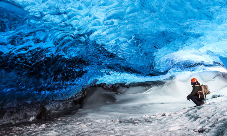 The highlight of the tour is a visit to a natural ice cave in Vatnajökull, Iceland’s largest glacier. The ice in the cave is spectacularly blue and is a very popular attraction.