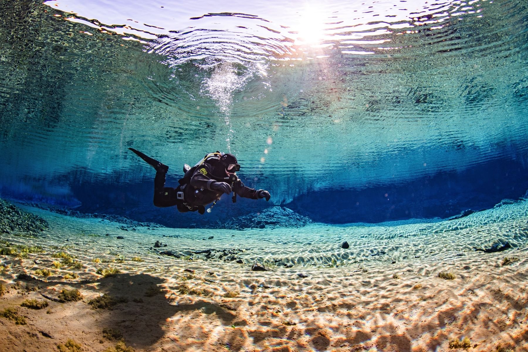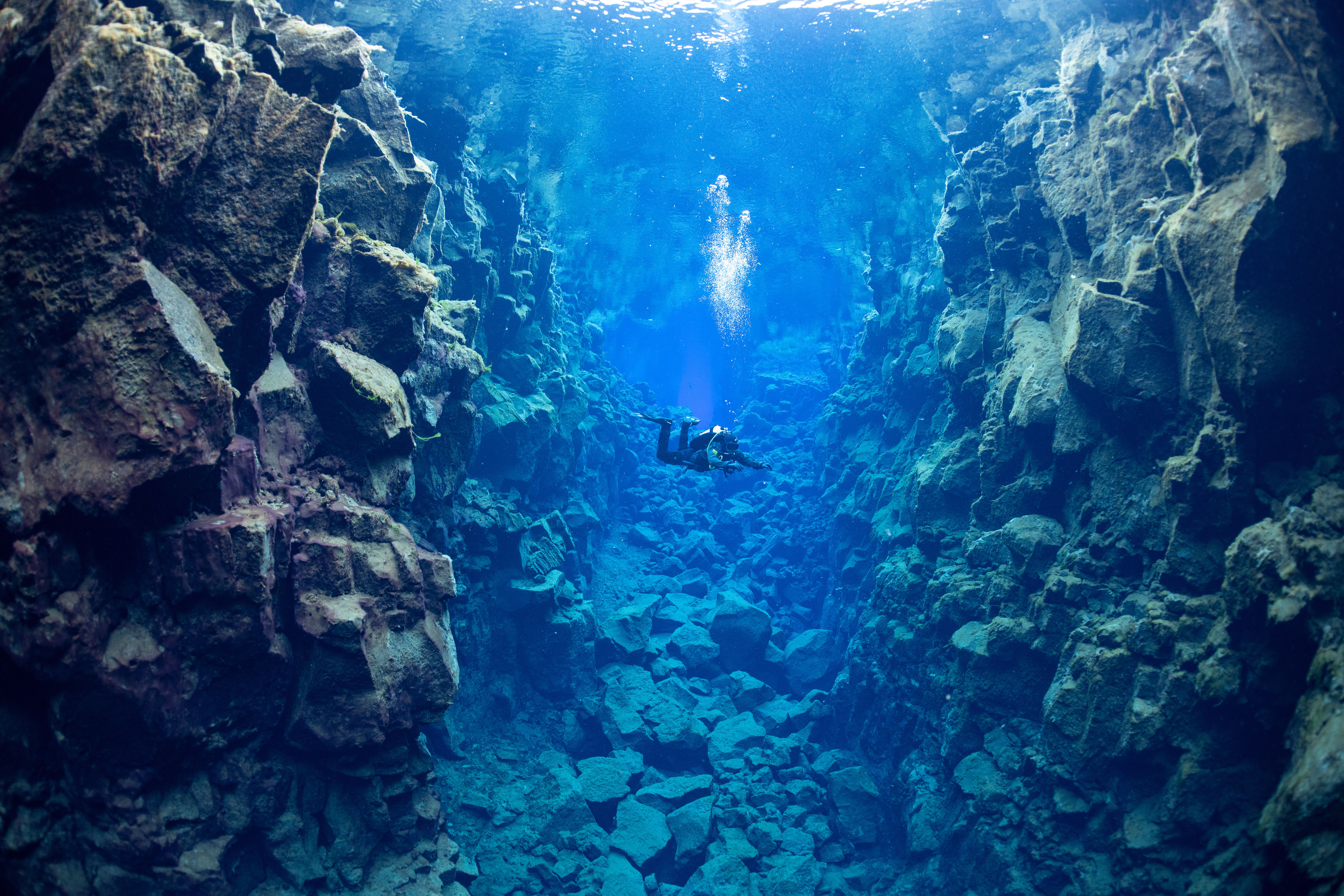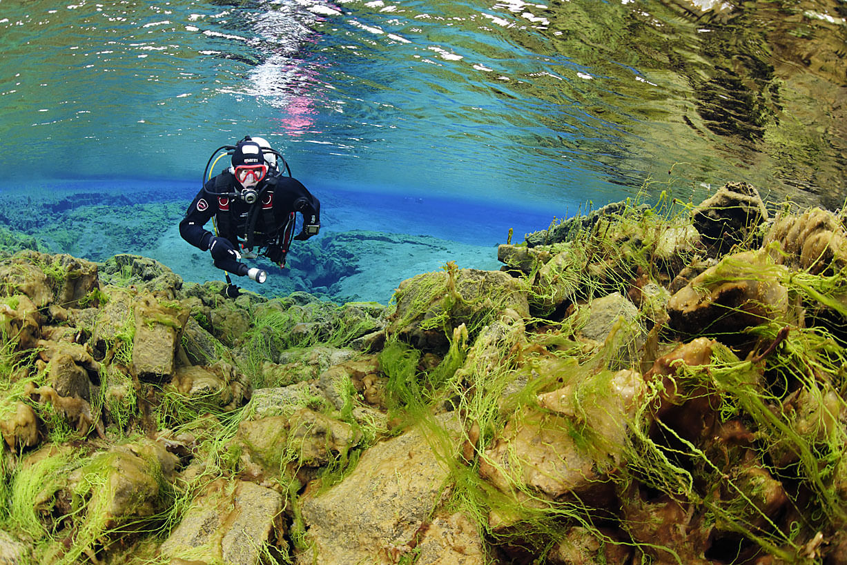 Experience Silfra's pristine, crystal clear water while you dive between the Eurasian and American continental plates. Upon arrival at Thingvellir National Park, your guide will introduce you to the unique geological and cultural history of Silfra before giving you a detailed briefing of the dive site. You guide will then assist you into your dry suit and setting up the dive equipment. We will explore the four main parts of Silfra, the big crack, Silfra hall, Silfra Cathedral and the Silfra Lagoon.