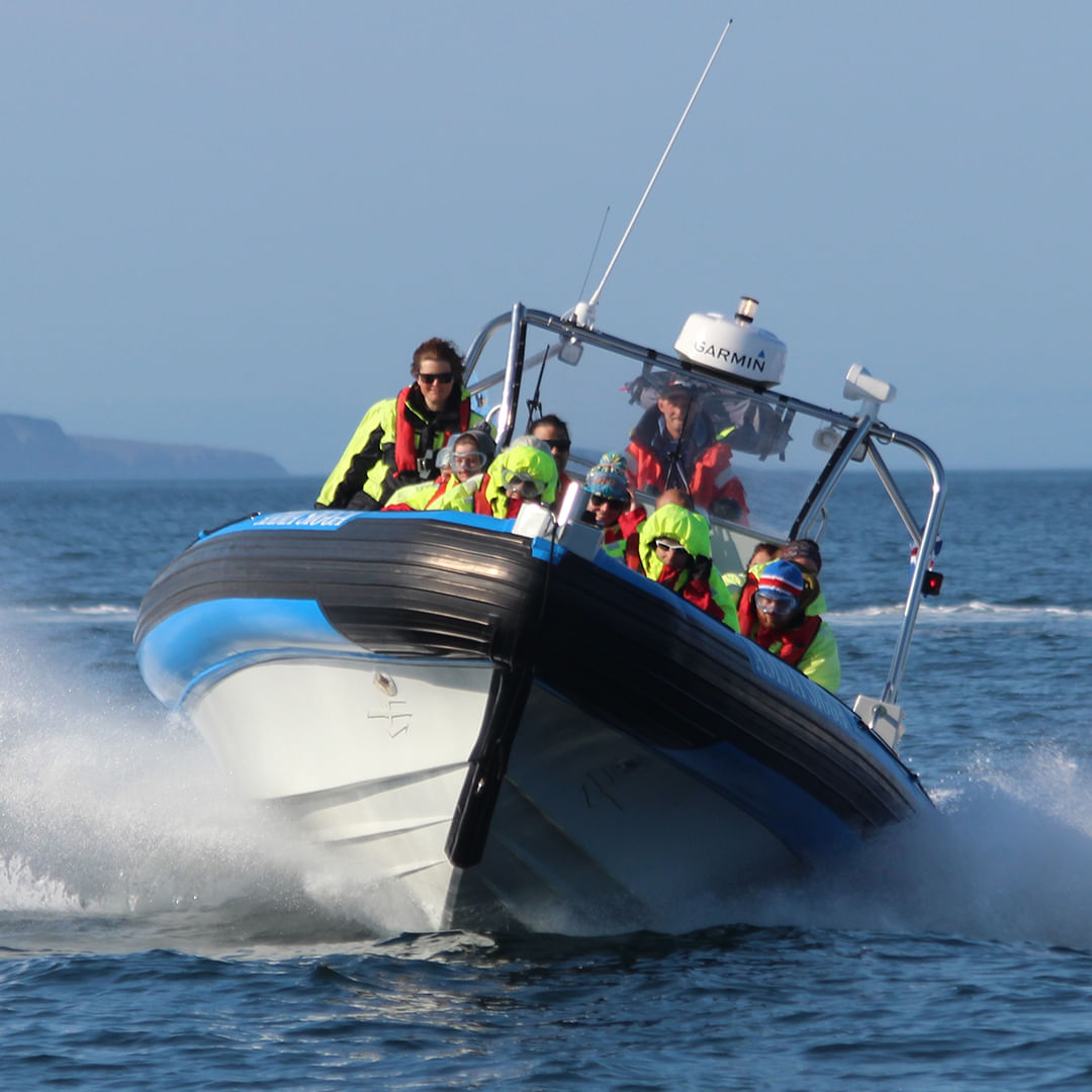 In this Puffins Exclusive express tour, we will take you to Puffin Island (Lundey) on a RIB boat to see one of the largest puffin colonies in Iceland. This island is only 4,5 nautical miles from Húsavík harbour and with our fast RIBs we will take you there in only a few minutes.
