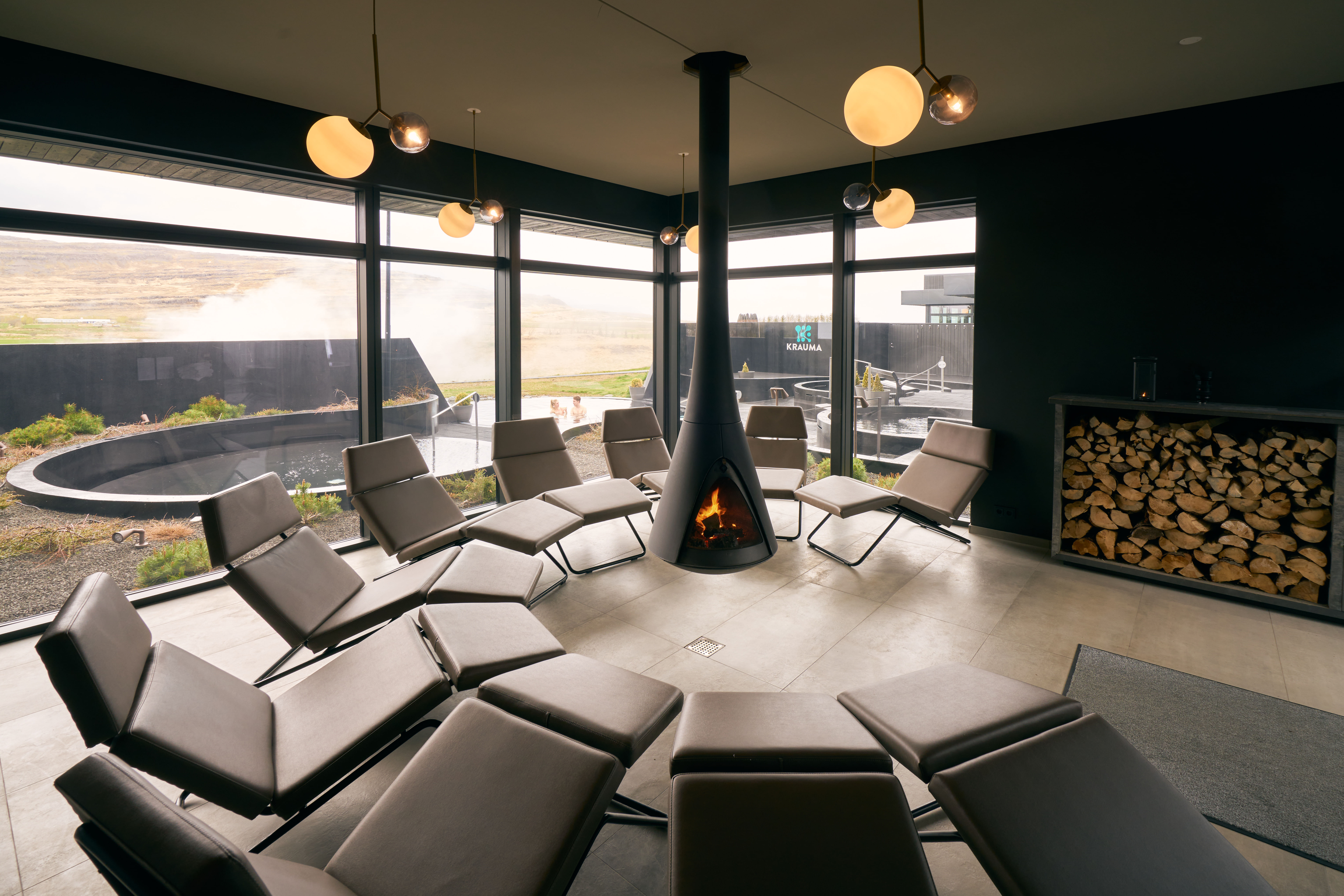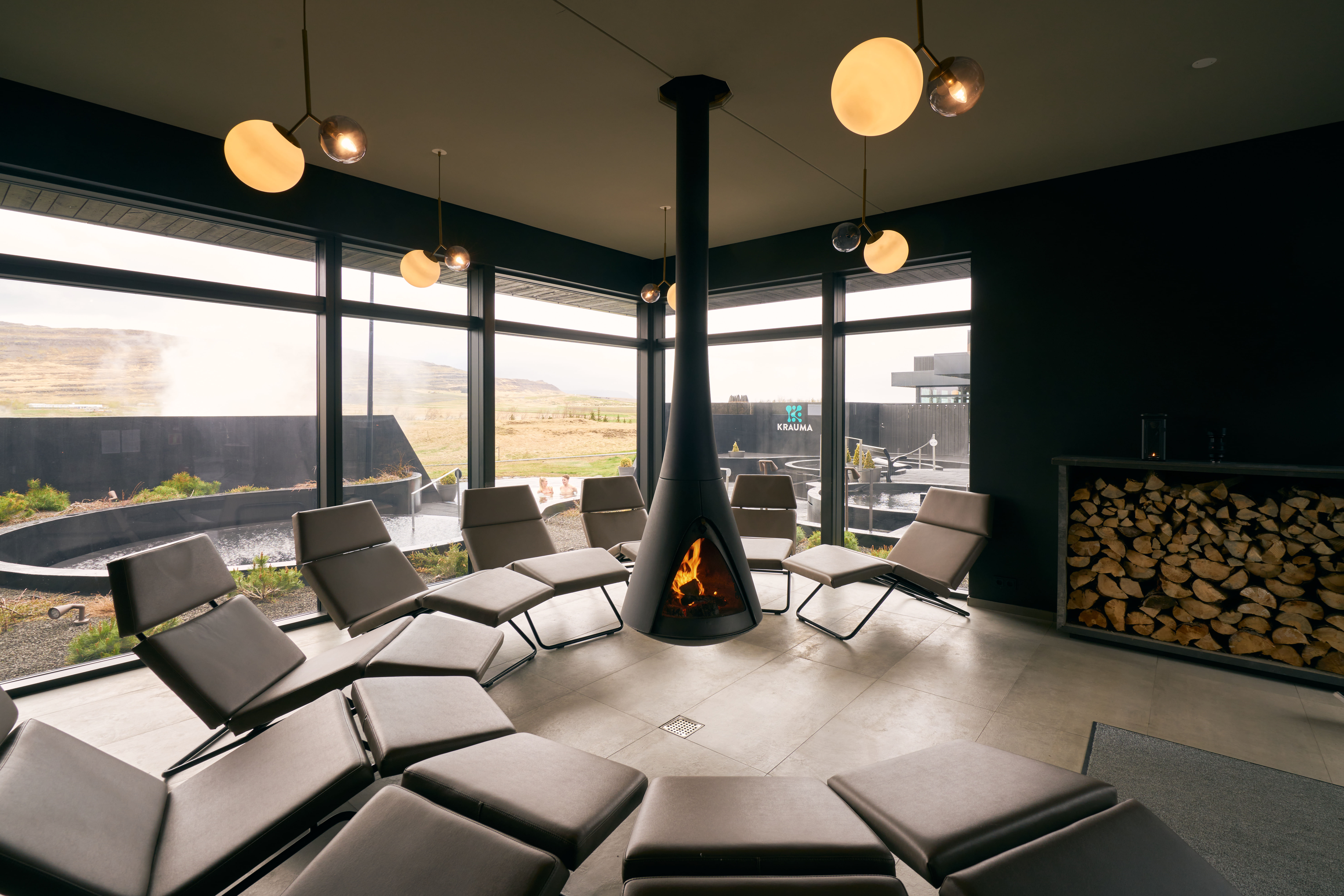 Krauma offers five relaxing natural geothermal baths, a cold tub to get your blood circulation going, steam room, Infrared cell and a relaxation room where you can rest by the fireplace while listening to soothing music.