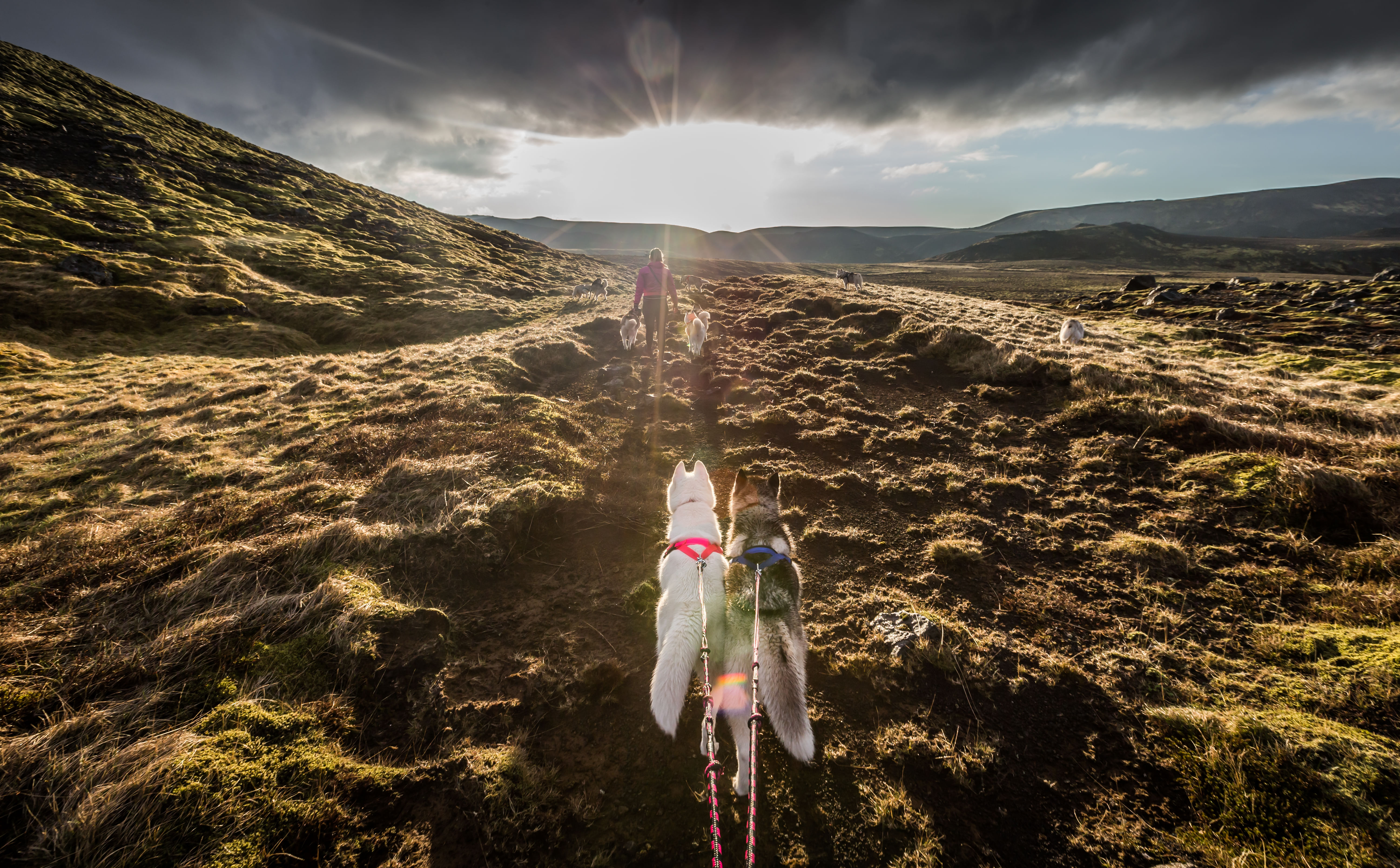 Hiking with Siberian Huskies
