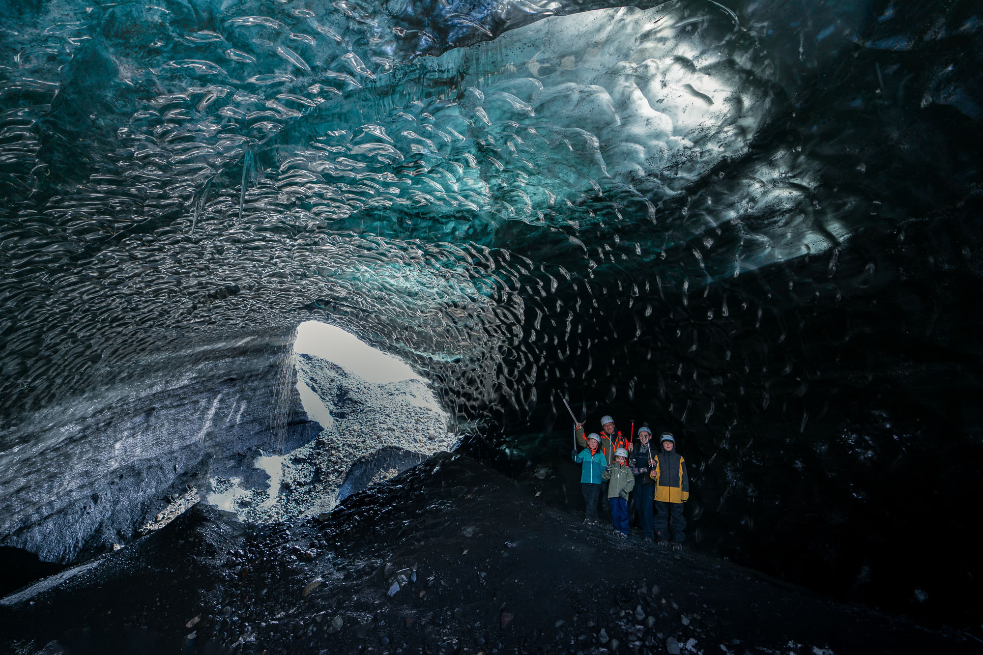 Once you arrive to the glacier, your guide will hand you all the necessary ice cave equipment and go over a safety briefing and facts about glaciers and ice caves. You’ll take a fun walk on the glacier with your experienced glacier guide before you enter the famous cave of “dragon glass”.