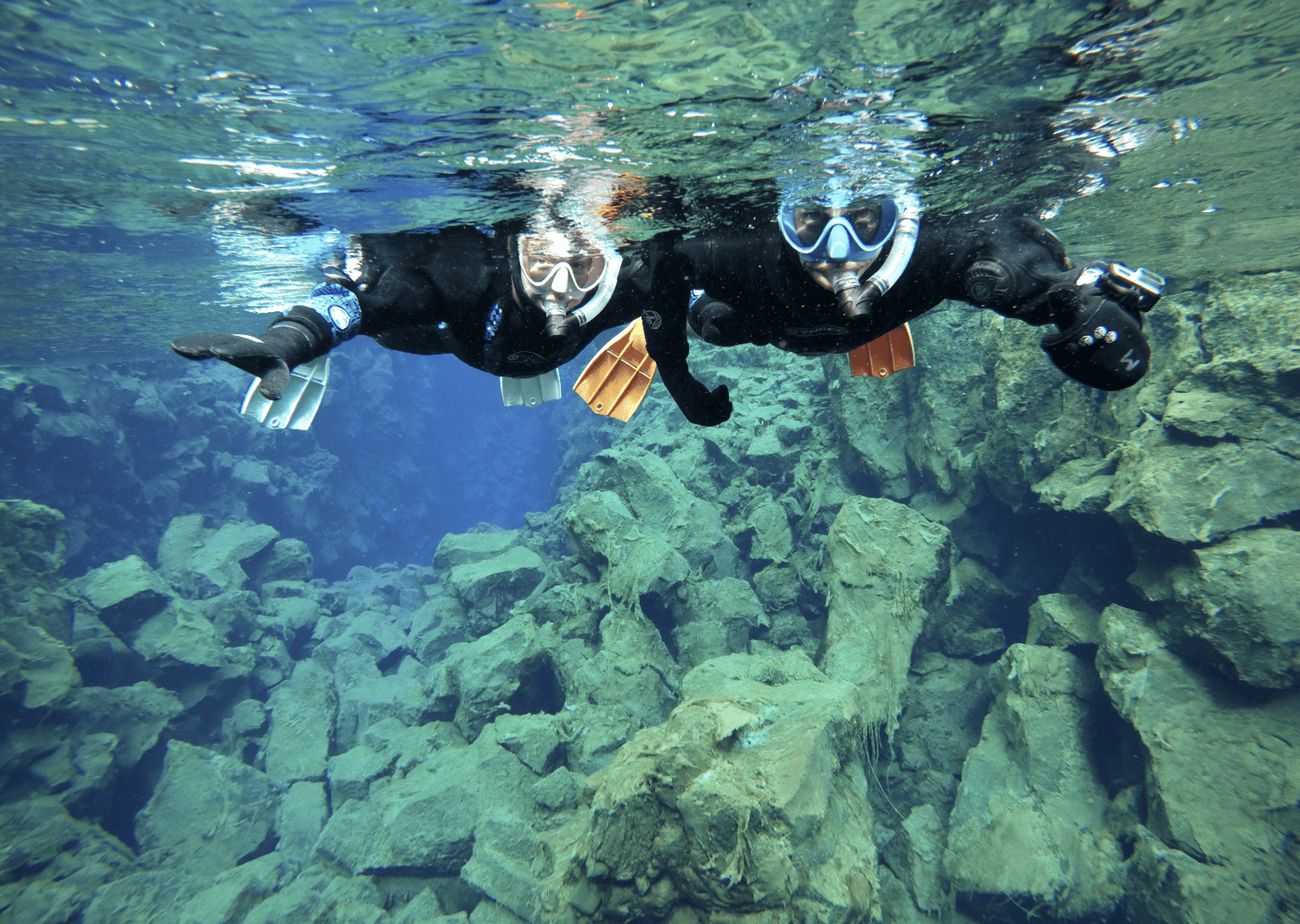 Come snorkeling in Silfra in Thingvellir National Park. Swim between tectonic plates floating on pure water on breathtaking underwater views and receive GoPro photos for free afterwards!